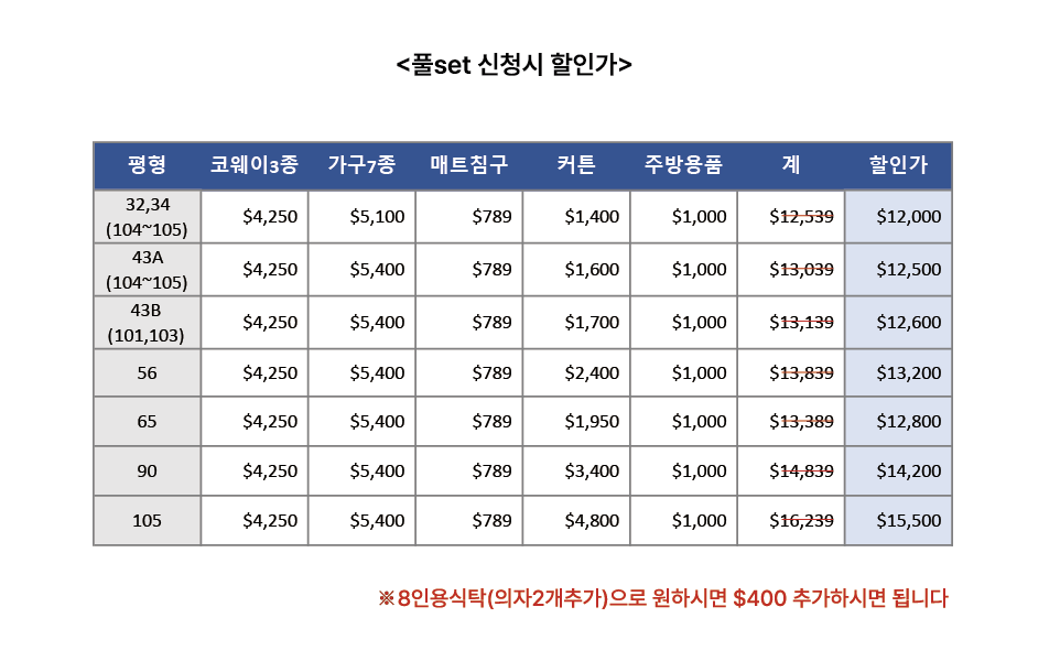 2. 7종 가구 set는 고객들의 요청과 이노 측의 결정으로 중간 톤의 색상으로 변경하였으며, 장은 붙박이장으로 제작되었음을 알려드립니다.